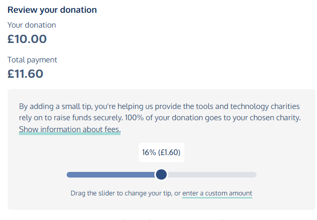 When you make a donation, you’ll have the option to top up your donation to cover the processing fees. This ensures we can provide expert strategy support, bespoke campaign management, innovative technology, and secure payment processing.